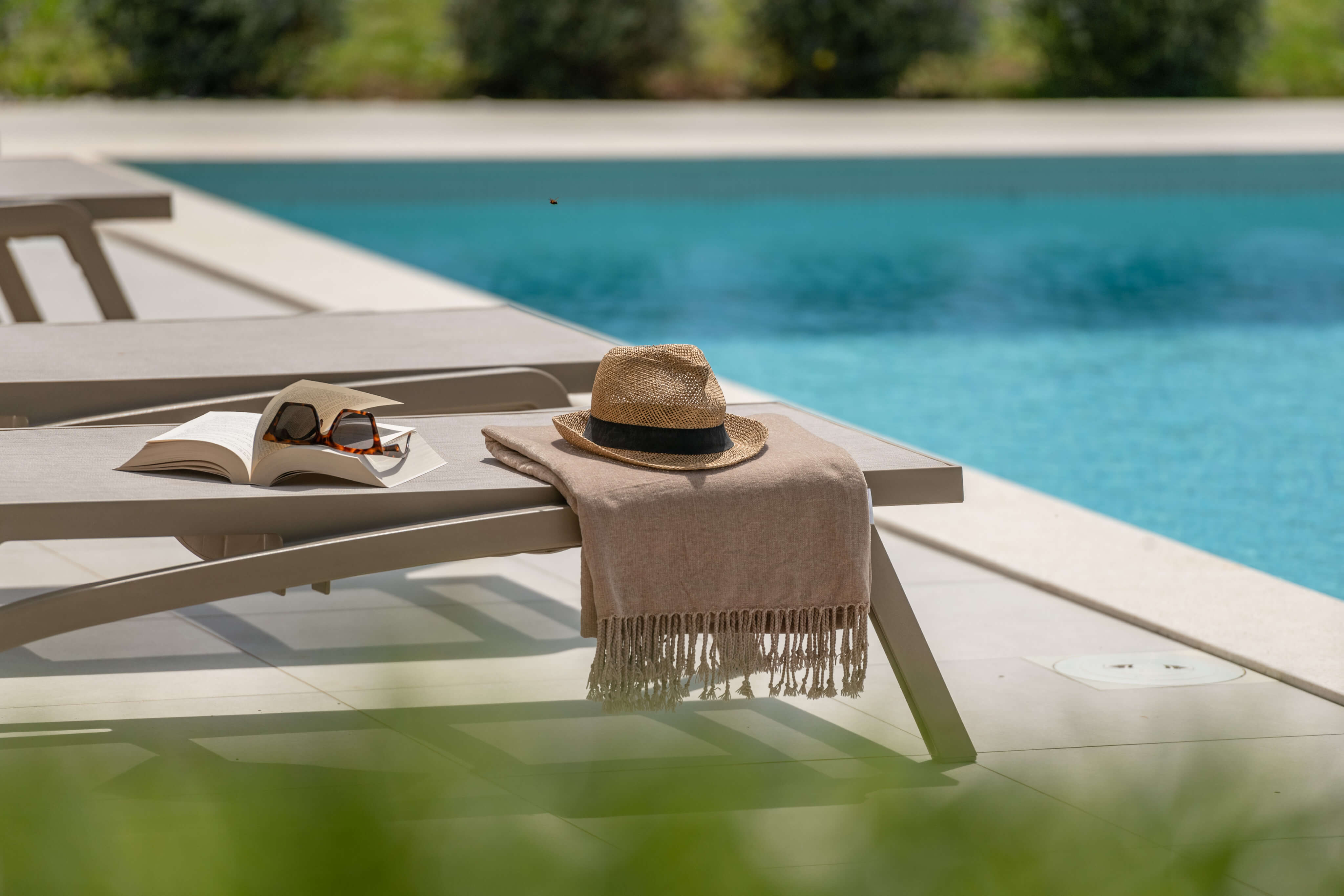 Surround yourself with the beauty of nature in our villa’s exquisite outdoor spaces. A lush garden full of fragrant rosemary, immortelle and levander blooms with crystal clear swimming pool in the middle create the perfect setting for relaxation and leisure, blending seamlessly with the natural landscape.
