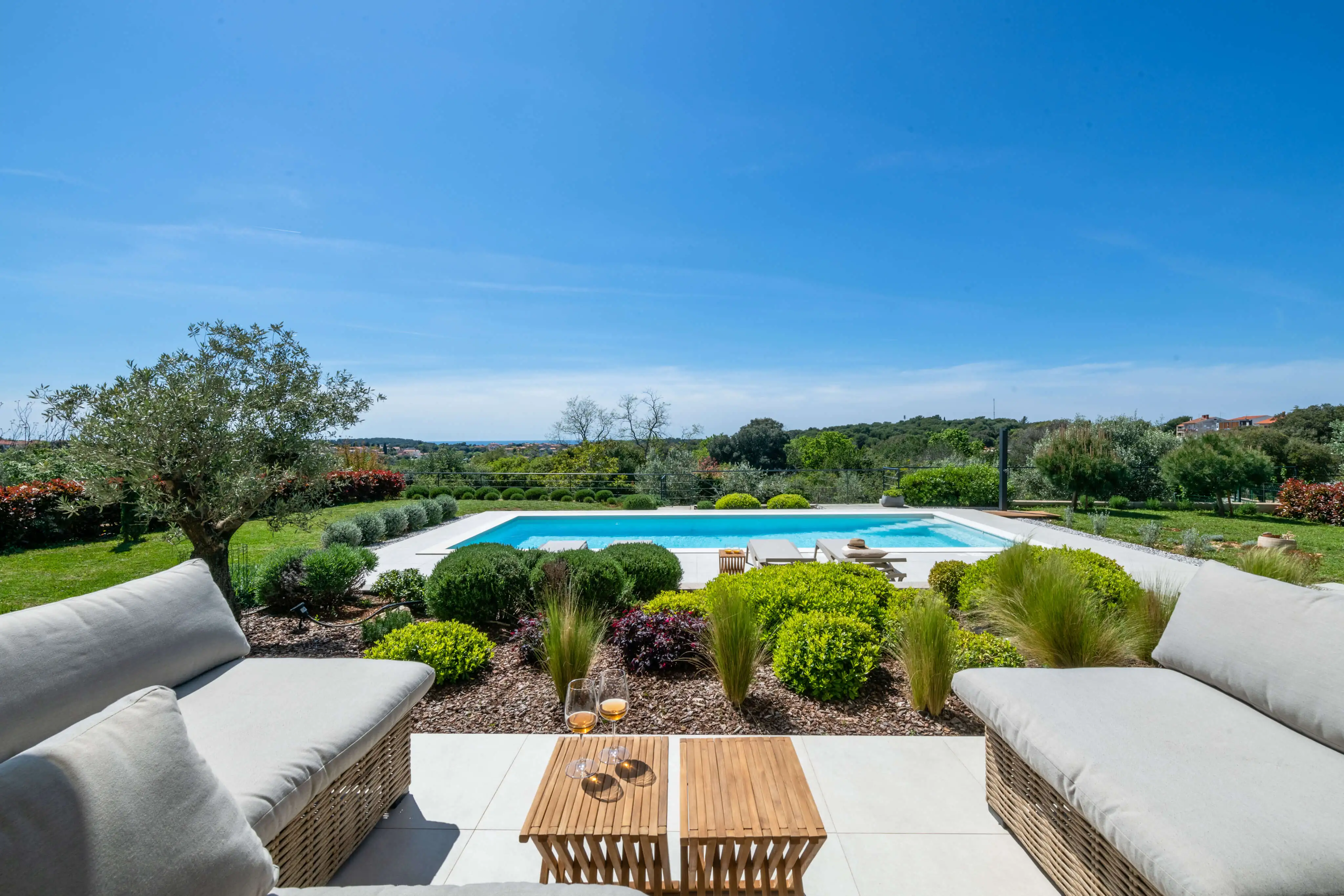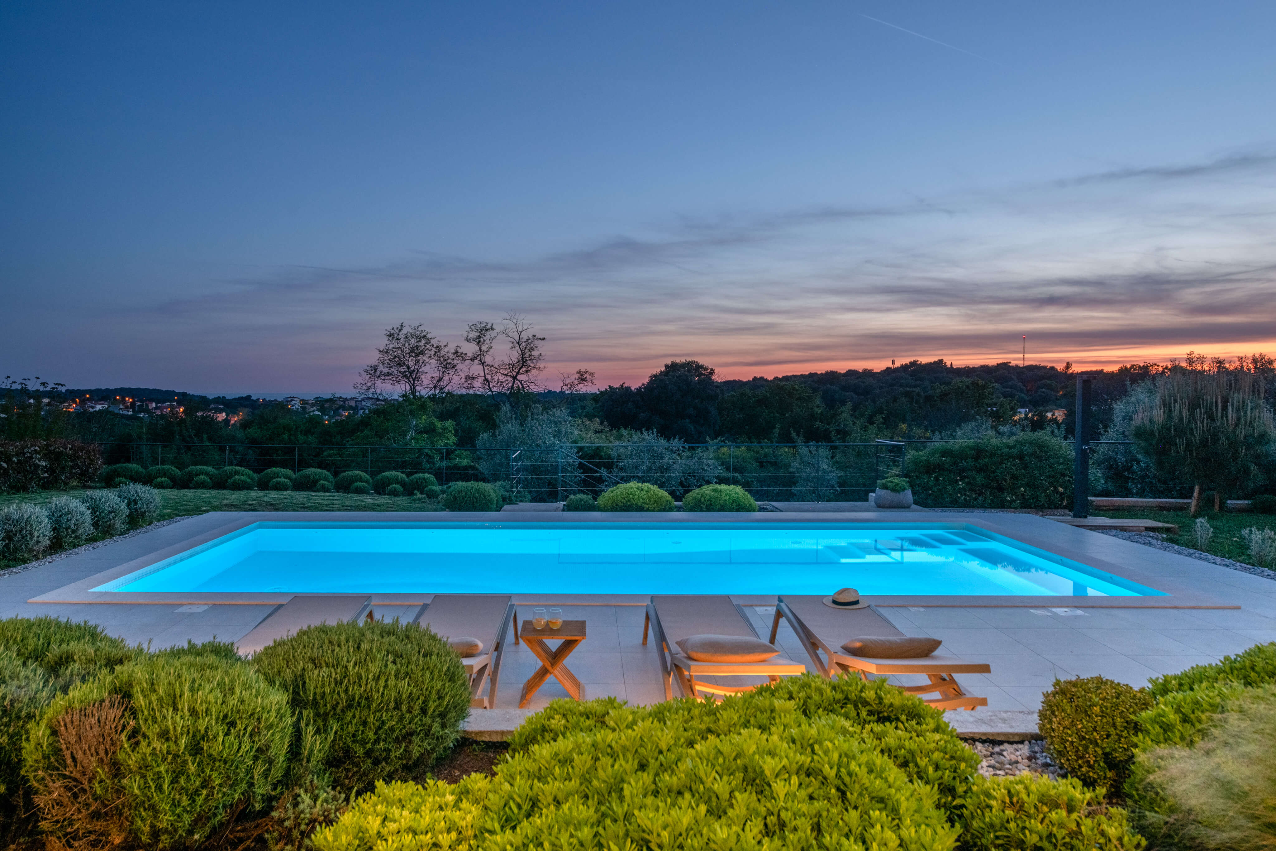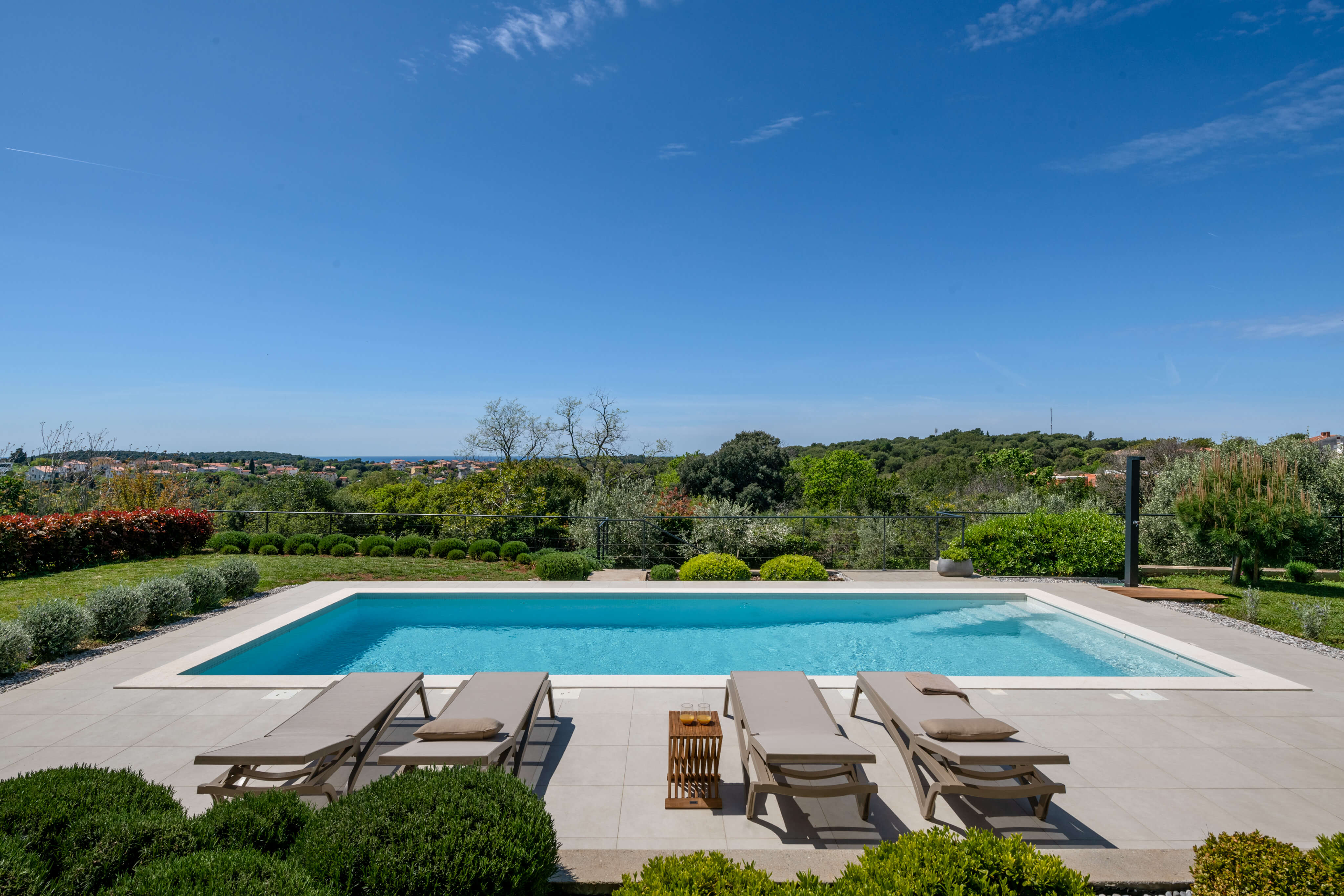 Sitting on one of the hills of the southernmost tip of Istria, the whole villa overlooks the horizon and lush vegetation, offering an amazing view from every single corner. Located in a quiet cul-de-sac, the villa is perfect for a relaxing holiday. Swim in its crystal clear pool and relax in its beautifully landscaped garden and leave the world behind.
