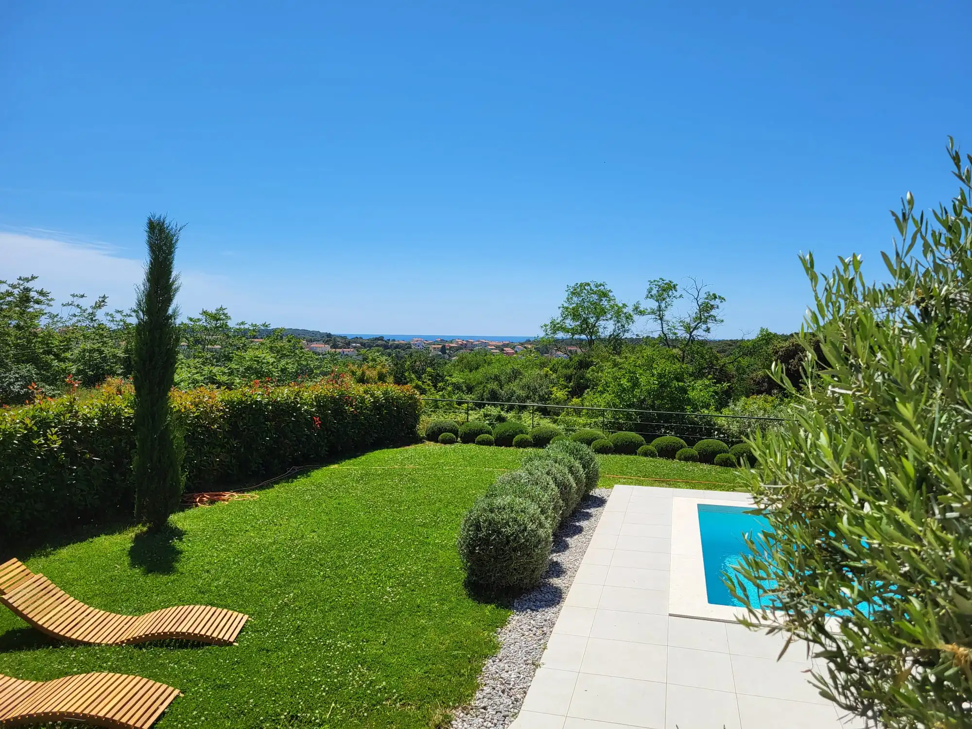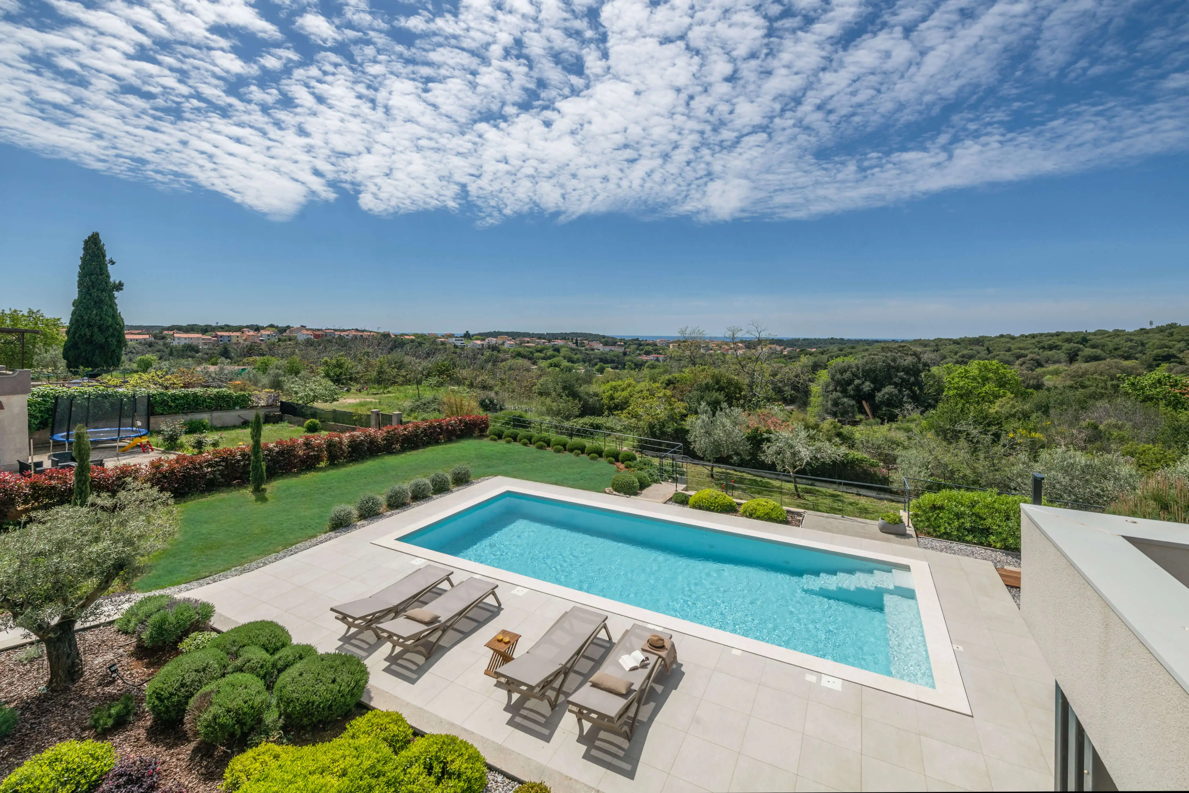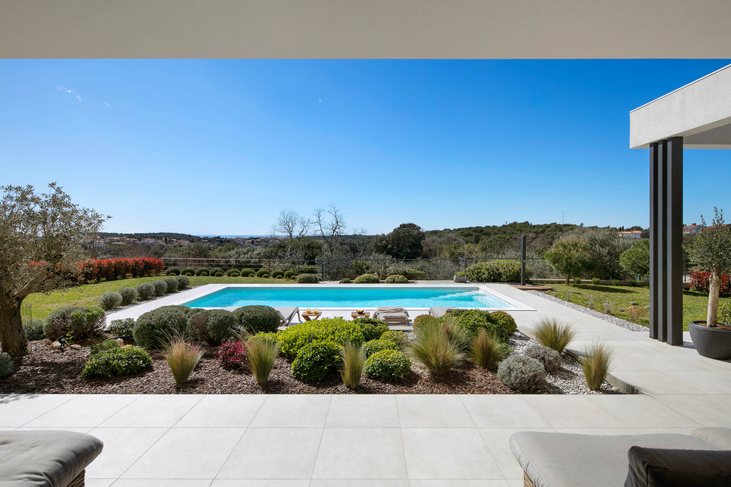 Sitting on one of the hills of the southernmost tip of Istria, the whole villa overlooks the horizon and lush vegetation, offering an amazing view from every single corner. Located in a quiet cul-de-sac, the villa is perfect for a relaxing holiday. Swim in its crystal clear pool and relax in its beautifully landscaped garden and leave the world behind.