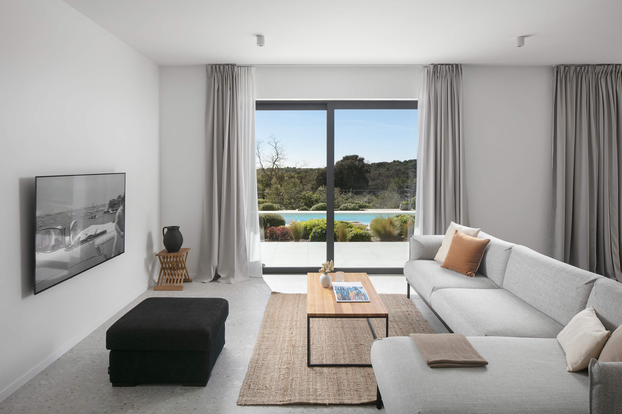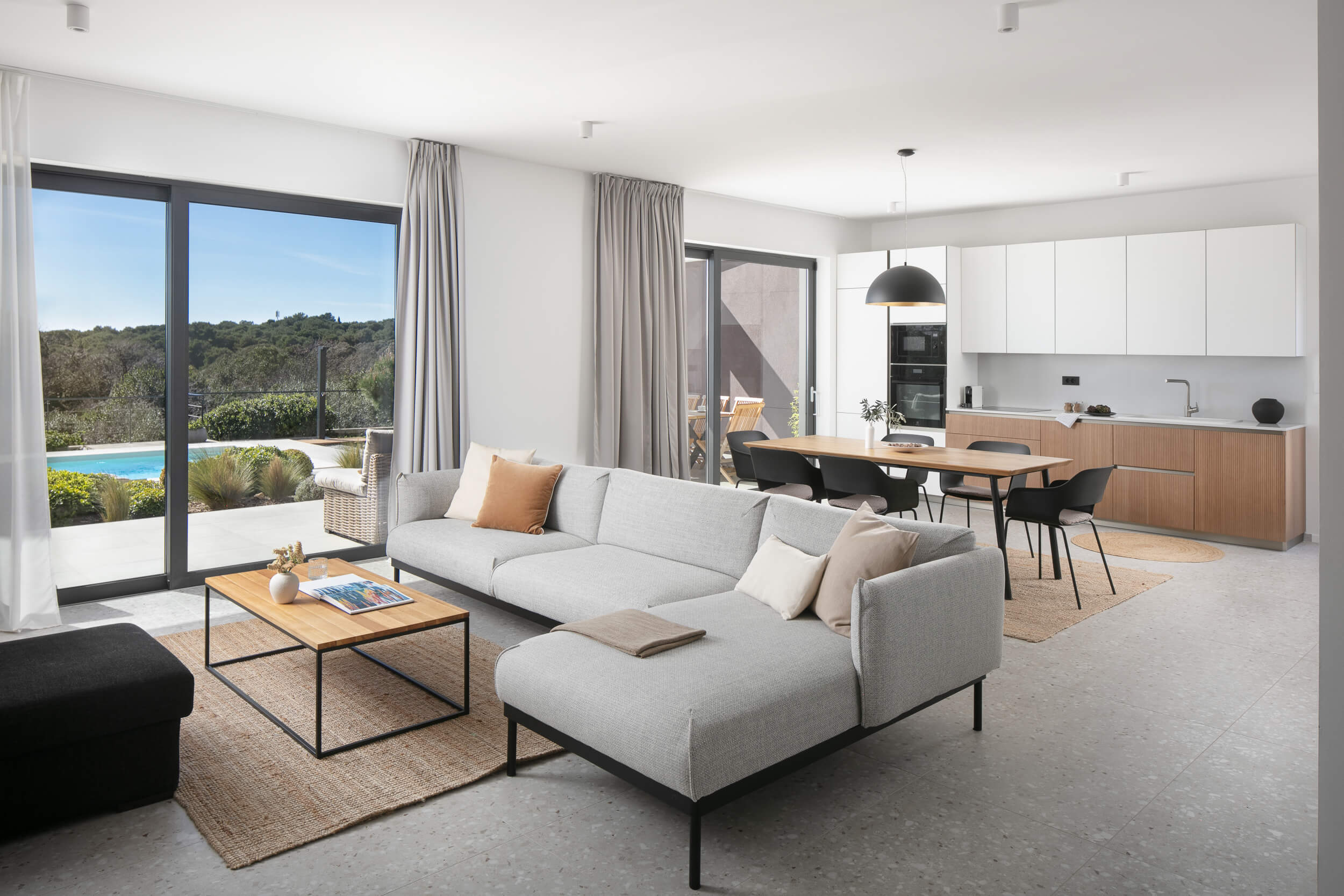 Our villa's interiors blend modern sophistication with classic comfort. Open, airy spaces feature high ceilings, natural materials, and tasteful décor, creating a light-filled, inviting atmosphere. Whether relaxing or entertaining, every detail is crafted for comfort and style, ensuring a serene and luxurious experience.
